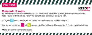 En raison du concours de bestiaux à Lillebonne, mercredi 11 mars, les arrêts des Places Félix Faure et Thimothée Holley ne seront pas desservis…