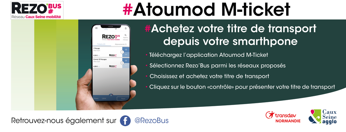 Achetez et gérez vos titres de transport Rezo'Bus sur votre smartphone grâce à l'application Atoumod M-Ticket.